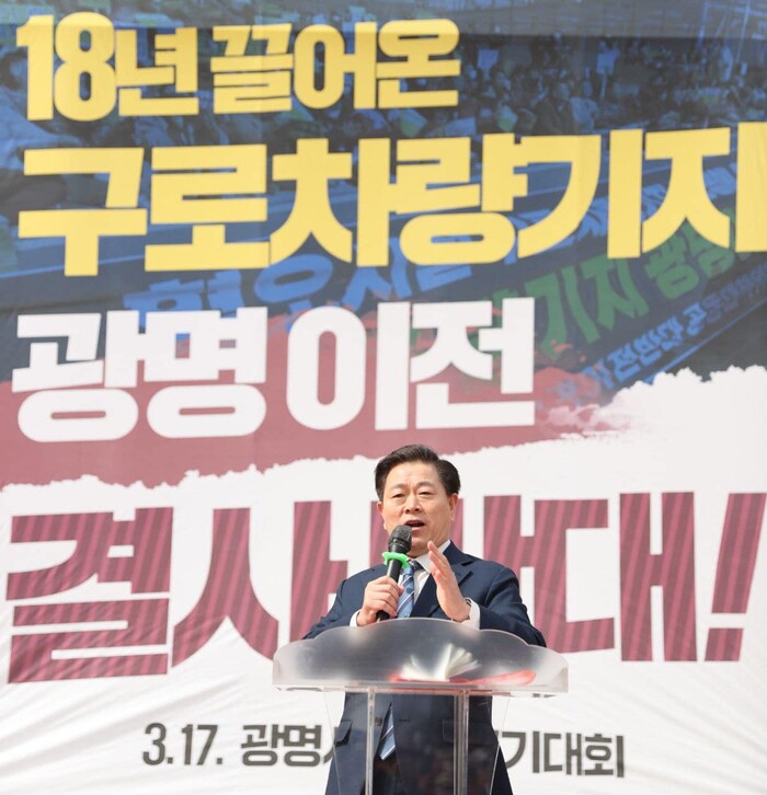 [로컬라이프] 송준형 기자 = 박승원 광명시장은 17일, 타탕성재조사를 3차례 이상 진행하며 무리하게 사업을 추진하는 구로차량기지 광명이전 사업은 수명이 다한 낡은 정책이다. 이제 이 사업은 중단해야 한다고 촉구했다.