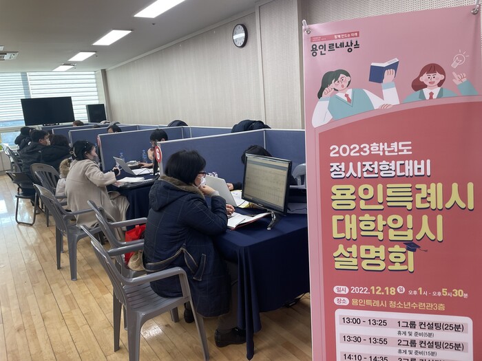 지난 18일 용인시청소년수련관 내 체육관에서 열린 설명회는 1:1 맞춤형 컨설팅과 17개 대학의 홍보부스가 운영됐다.