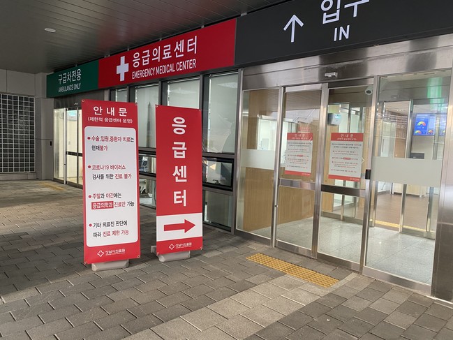 <사진/ 성남시의료원 응급의료센터 입구 안내 사진>