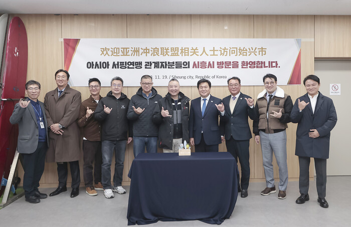 시흥시(시장 임병택)는 지난 19일 거북섬 웨이브파크에서 국내 최초로 개최된 ‘2023 WSL 시흥코리아 오픈 국제서핑’ 폐막식에 앞서 아시아서핑연맹(중국서핑협회장) 부회장 저우 창청(Zhou Changcheng)이 이끄는 아시아서핑연맹 관계자들과 함께 간담회를 진행했다.