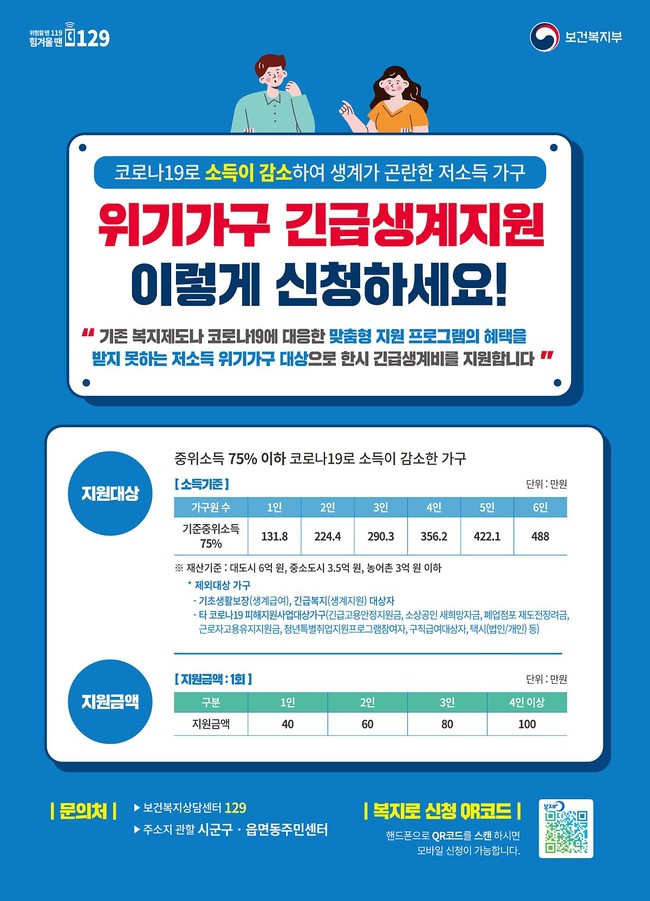[로컬라이프] 코로나19의 장기화로 소득이 감소한 저소득 위기가구를 대상으로 한 위기가구 긴급생계지원 신청 기간이 11월 30일까지 연장됐다.
