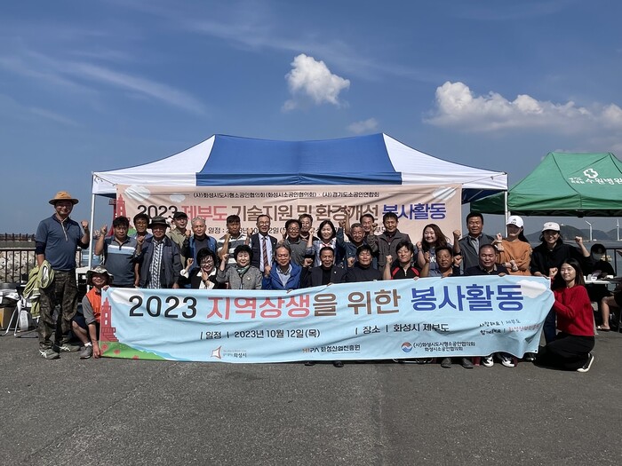 화성시도시형소공인협의회(회장 김영흥)가 화성산업진흥원(원장 김광재)을 비롯한 화성시 관내 소공인 지원기관, 팔탄면 소공인 집적지구 내 소공인업체의 대표들과 함께 12일 제부도에서 환경개선 및 주민지원 봉사활동을 펼쳤다.