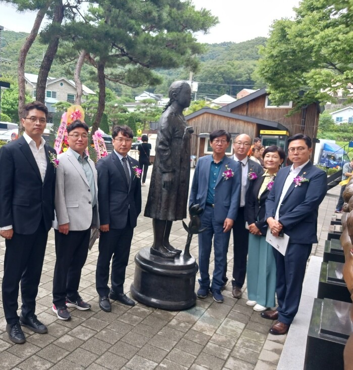 경기도의회 더불어민주당 대일굴욕외교대책위원회(위원장 국중범, 성남4) 위원들과 조성환 수석부대표(파주2)는 12일(토) 광주 나눔의 집에서 열린 ‘2023년 일본군 위안부 피해자 기림의 날 기념식 및 고 이옥선 어르신 흉상 제막식’에 참석했다.