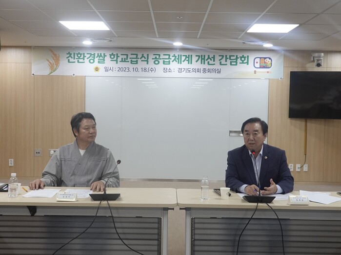 경기도의회 농정해양위원회(위원장 김성남, 국민의힘·포천2)는 18일 경기도의회에서 친환경쌀 학교급식 공급체계 개선을 위한 간담회를 개최하고 건의사항을 청취 후 다양한 의견을 교환하였다.