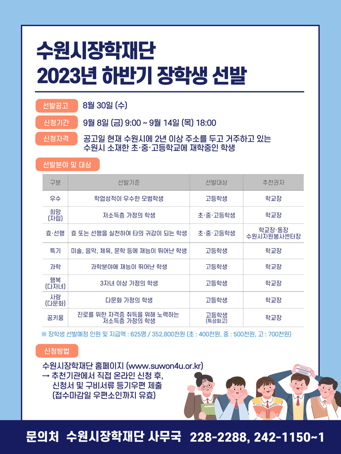 문의 : 031-228-2288, 수원시장학재단 사무국