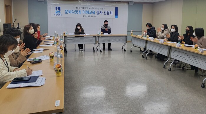 사진/ 문화다양성 이해교육 강사간담회를 진행하고 있는 모습.(사진제공=수원시)