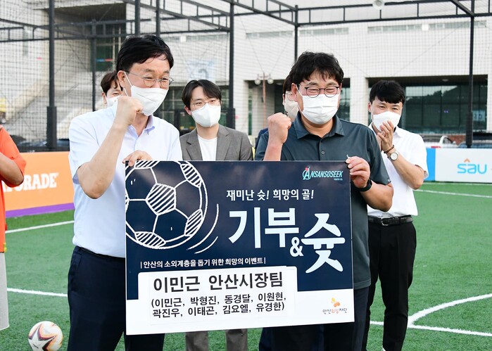 [로컬라이프] 송준형 기자 = 이민근 안산시장은 28일, 안산희망재단 안산소식두 기관에서 준비한 ‘기부&슛 이벤트’에 안산시장팀으로 참석했다.