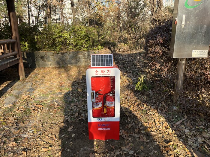 이번 보이는 소화기 설치는 산불 발생 시 신속한 초동진화로 인명 및 재산 피해를 최소화하고 산불 진화 장비 비치로 등산객 경각심을 일으켜 안전한 공원 환경을 조성하기 위해 추진됐다.