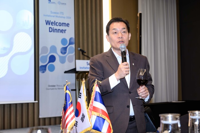 7일 저녁 코드야드 메리어트 수원에서 열린 환영 만찬을 주재한 이재준 수원시장은 “이번 연수가 각국의 ITS 기술을 한 단계 성장시키는 마중물이 되길 바란다”며 “AI 신호체계, 긴급차량우선신호시스템 등 도심을 촘촘하게 연결하는 수원 ITS의 저력을 느낄 수 있을 것”이라고 말했다.