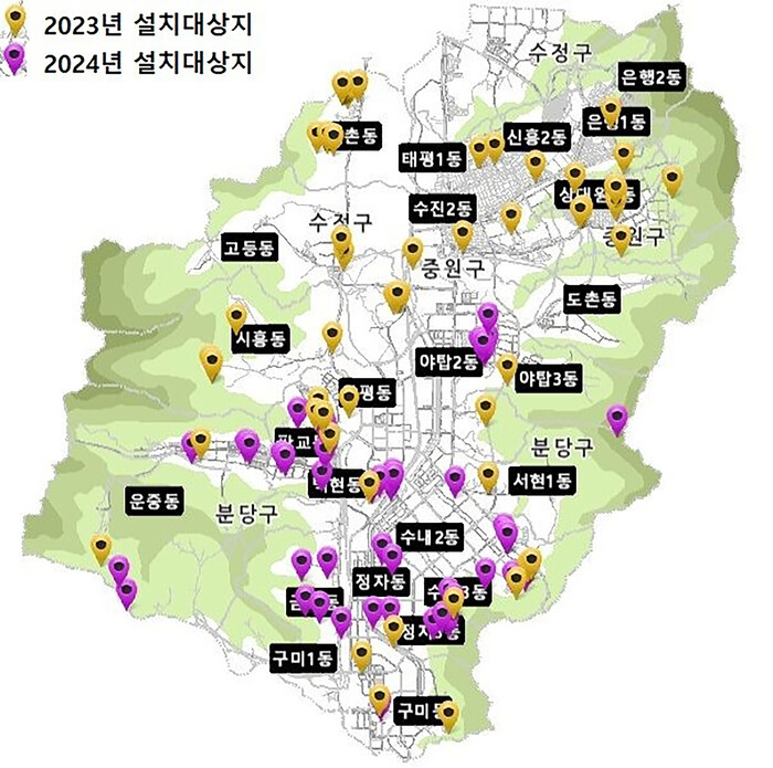 성남시는 올해 태양광 51곳, 지열 6곳의 신재생에너지 설비 설치를 추진 중이며, 소요 비용은 총 13억9746만원(국비 6억7172만원, 시비 5억6955만원, 시민 자부담 1억5619만원)이다.