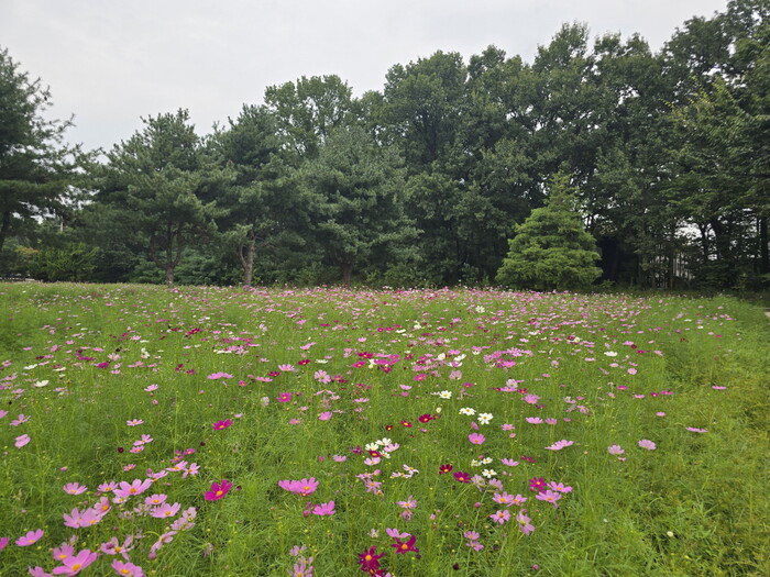 일반 코스모스, 빅스타, 황화코스모스가 어우러져 화려한 가을 풍경을 선사한다. 코스모스는 9월 중순 절정을 이룰 것으로 예상된다.