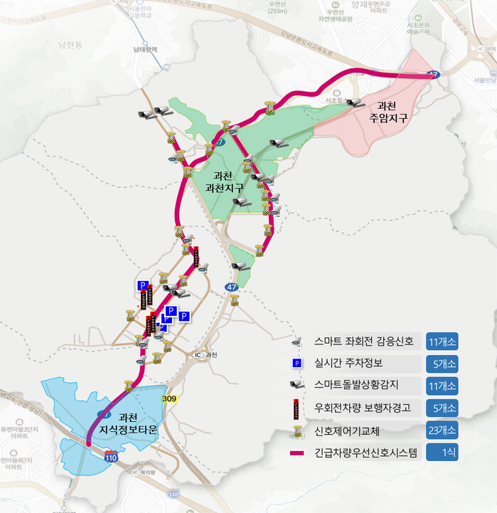 한편, 과천시는 2023년 공모사업에도 국비 15억원을 확보하는 등 3년(2021년~2023년) 연속 선정으로 지능형교통시스템(ITS) 구축 및 고도화 사업을 단계적으로 추진할 수 있게 되었다.
