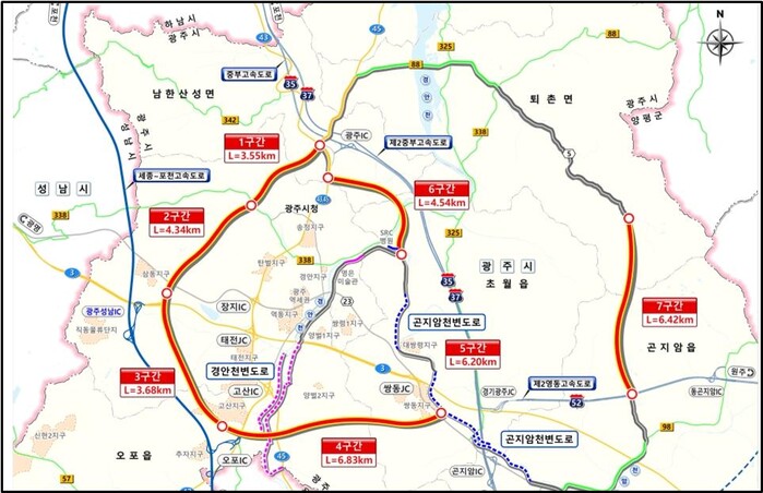 한편, 광주시 순환도로 및 경안‧곤지암 천변 도로는 총 연장 46.04㎞, 총 사업비는 1조 57억원이 소요될 것으로 예상되고 있다.
