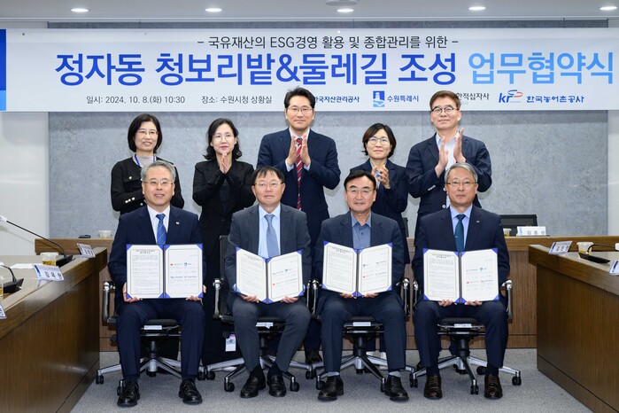 수원시(시장 이재준)는 8일 한국자산관리공사, 대한적십자사, 한국농어촌공사와 ‘정자동 청보리밭 둘레길 조성을 위한 업무협약’을 체결했다.