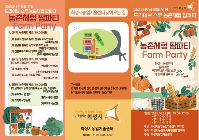 팜파티와 관련한 자세한 사항은 화성시농업기술센터 농업문화팀(031-5189-3796, 6365)으로 문의하면 된다.