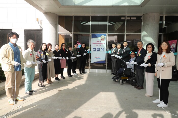 군포시는 교육부 국립특수교육원 주관 ‘2024년 장애인 평생학습도시’로 지정돼 4월 17일 시청 로비에서 현판식을 가졌다.