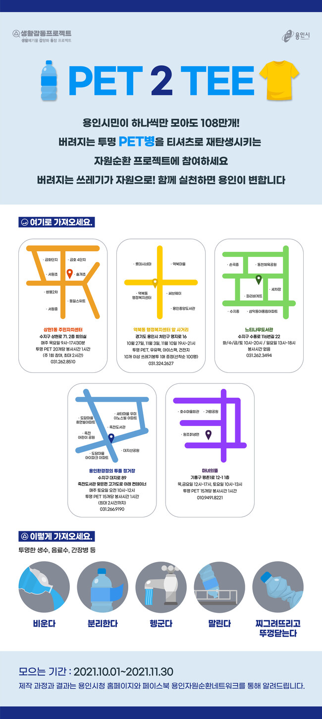 티셔츠 디자인에도 시민들이 직접 참여해 용인시를 알리고 환경을 보호하자는 메시지를 담을 예정이다.