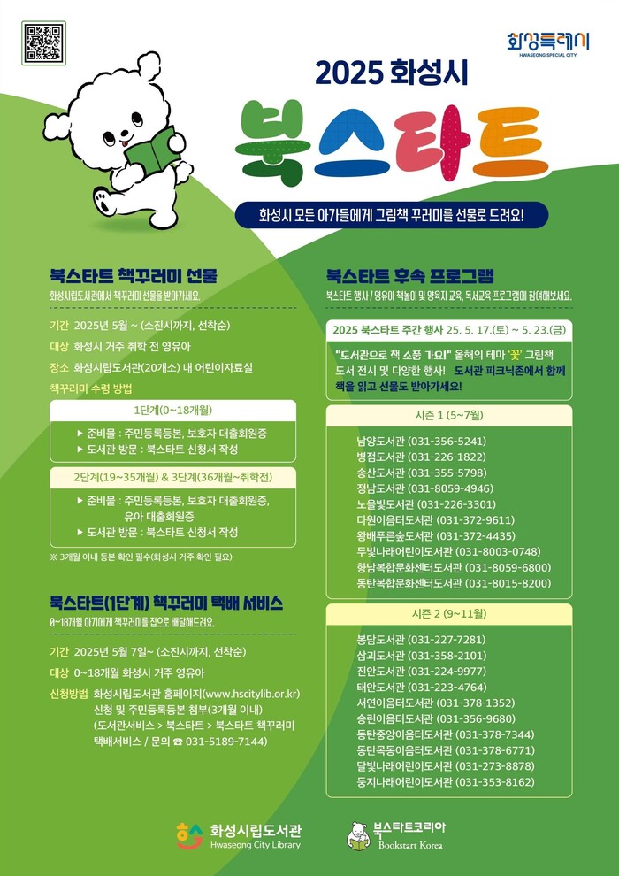 화성특례시(시장 정명근)가 이달부터 영유아의 건강한 성장과 책과의 즐거운 첫 만남을 돕기 위한 ‘2025년 화성시 북스타트 사업’을 운영한다.