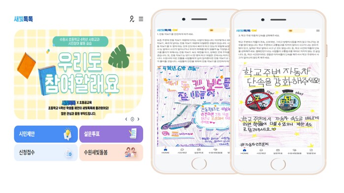 초등학교 4학년 학생들이 사회교과목 중 ‘지역 문제와 주민 참여'를 학습하고 교실에서 발굴한 지역의 문제점과 해결 방안을 새빛톡톡으로 제안하는 것이다.