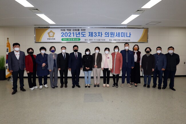 안양시의회는 11월 5일(금) 2층 소회의실에서 의원 및 사무직원 등을 대상으로 2021년도 제3차 의원세미나를 개최하였다.