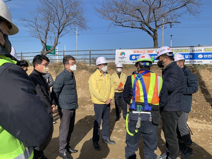 평택시(시장 정장선)는 지난 11월 21일부터 9일간 합동점검반을 구성해 중대산업재해 예방을 위한 시 소속 사업장 하반기 안전보건 점검을 추진했으며, 12월 5일 최원용 부시장과 함께 ‘기산배수지 건설공사’ 송수관로 매설 도급 작업현장을 방문하여 하반기 점검을 마무리 지었다.