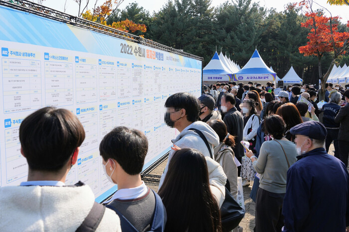 사진/구직자들이 채용 정보 게시판을 보고 있다.(사진제공=수원시)