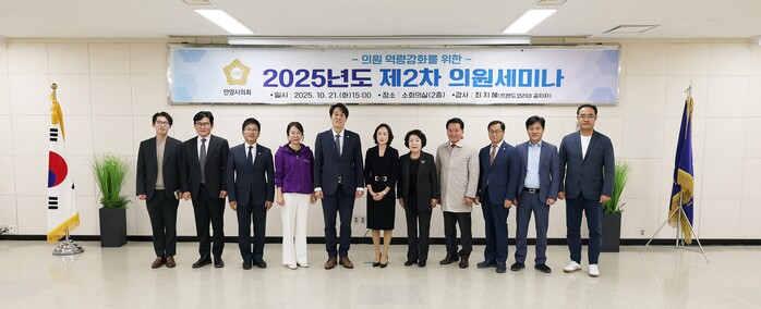 안양시의회(의장 박준모)는 10월 21일(화) 시의회 2층 소회의실에서 시의원 및 사무국 직원을 대상으로 2025년도 제2차 의원세미나를 개최했다.