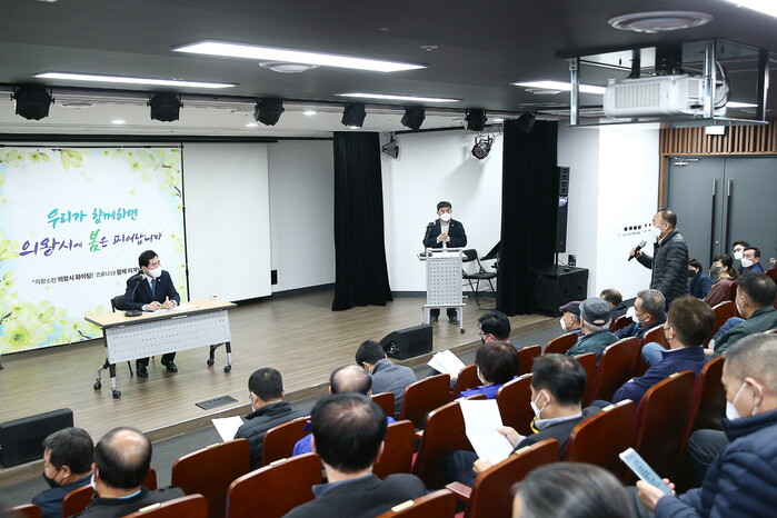 김상돈 의왕시장이 지난 30일 왕림이팝아트홀에서 코로나19로 어려움이 지속되고 있는 개인택시 운송사업자들과 대화의 시간을 가졌다.