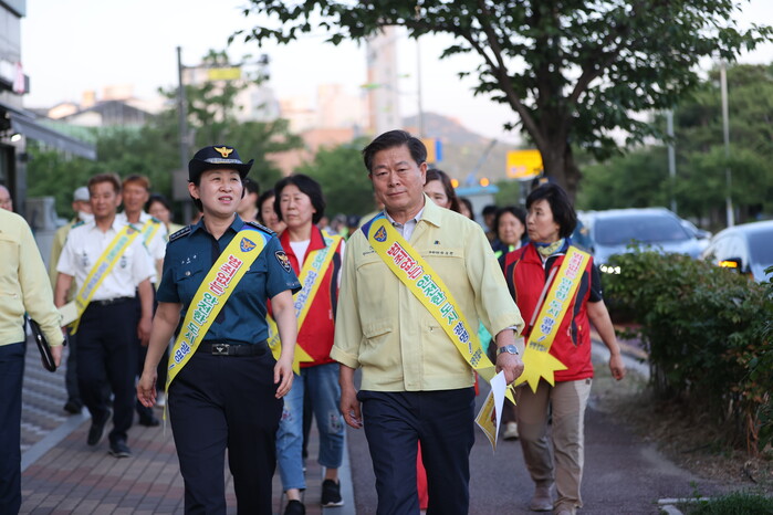 이날 박승원 시장을 비롯한 100여 명의 순찰단은 소하지구대를 시작으로 소하 휴먼시아 6단지, 소하도서관을 지나며 인근 주거지역의 치안을 살폈다. 이어 야간시간대 시민 왕래가 많은 이마트 광명소하점 인근, 소하 상업지구, 한내 근린공원을 순찰하며 CCTV, 로고젝터, 보안등 등 범죄 예방 시설물도 함께 점검했다.