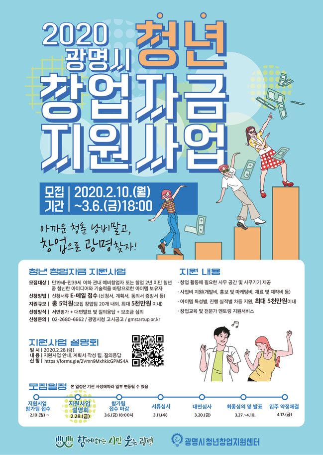 광명시, 2020년 청년 창업자 육성과 창업기반 조성 위해 '창업자금 최대 5천만원' 지원
