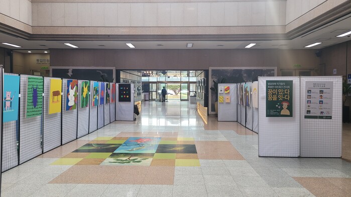 사진/ 수원시청 로비에서 열린 ‘꿈이 있:다 꿈을 잇-다’ 전시회 전경(사진제공=수원시)