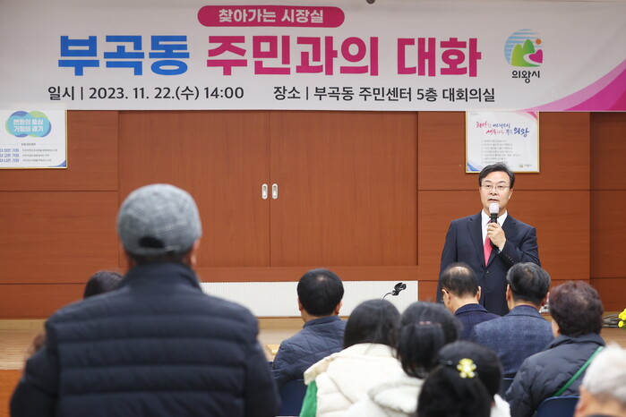 김성제 의왕시장이 22일 부곡동주민센터에서 제20차‘찾아가는 시장실’을 개최하고 주민들과 소통하는 시간을 가졌다.