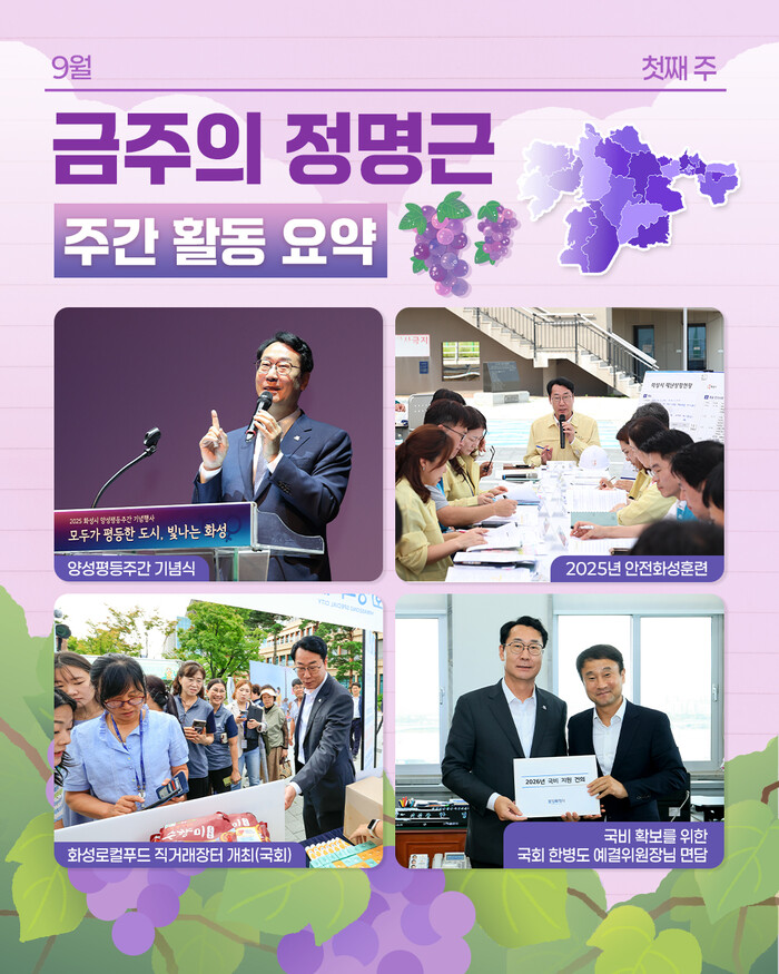 [화성=로컬라이프] 송준형 기자 = 정명근 화성특례시장은 6일, 페이스북을 통해 9월이 시작됐지만 아직 늦더위가 남아 있다며, 이번 주는 우리 화성의 특산품을 널리 알리고, 내년도 국비 확보를 위해 분주하게 보낸 한 주였다고 밝혔다.