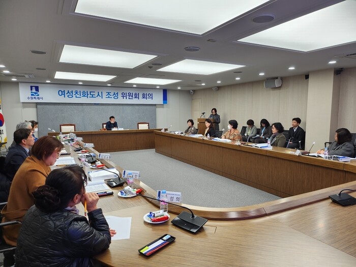 사진/수원시 여성친화도시 조성 위원회가 회의를 하고 있다.(사진제공=수원시)