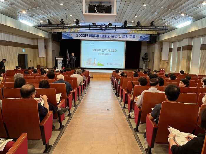 공동주택 입주자대표회의 구성원 130여명이 참석한 가운데 진행된 이번 교육은 구성원이 매년 받아야 하는 법정 의무교육이다.