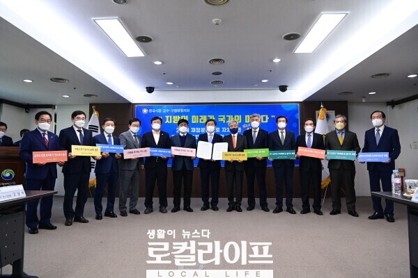 | ▲ 자치분권 강화와 완전한 지방자치의 실현을 위한 정치권과 지역사회의 움직임이 활발하다. 자료 사진. 사진은 전국시장군수구청장협의회가 지난 3월 31일 대전시 서구청에서 개최된 '민선7기 3차년도 제3차 공동회장단 회의'에서 LH 사태를 규탄하는 성명서를 발표하며, 재발방지를 위한 근본적인 대책 마련을 촉구하는 모습. (사진제공=논산시) |