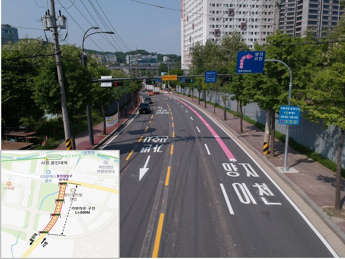 이 구간은 출근 시간대에는 용인대 방향으로 차량 통행이 급격하게 증가하고, 퇴근 시간대에는 시청 방향으로 이동하는 차량이 급증해 잦은 정체 현상을 빚어왔다.