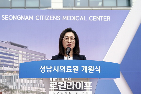 | ▲ 은수미 성남시장은 꼭 필요하지만 수익이 낮아 소홀한 필수의료 공백을 메우기 위한 공공의료기관의 역할을 강조하며, 성남시와 성남시의료원이 협력해 각 기관이 수행하는 보건-의료-복지가 이어지는 전 생애에 걸친 통합 서비스를 실현하겠다고 밝혔다. 사진은 은수미 시장이 성남시의료원 개원식에 참석해 축사를 하는 모습. (사진제공=성남시) |