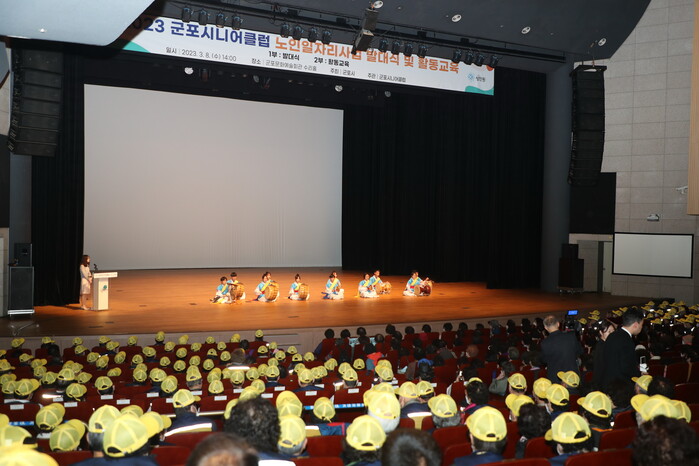 이날 발대식은 내빈 및 노인일자리 참여 어르신 약 1,100명이 참석한 가운데 군포중학교 사물놀이팀 ‘한울’과 군포남성합창단 2팀의 공연으로 다채롭게 문을 열었다.