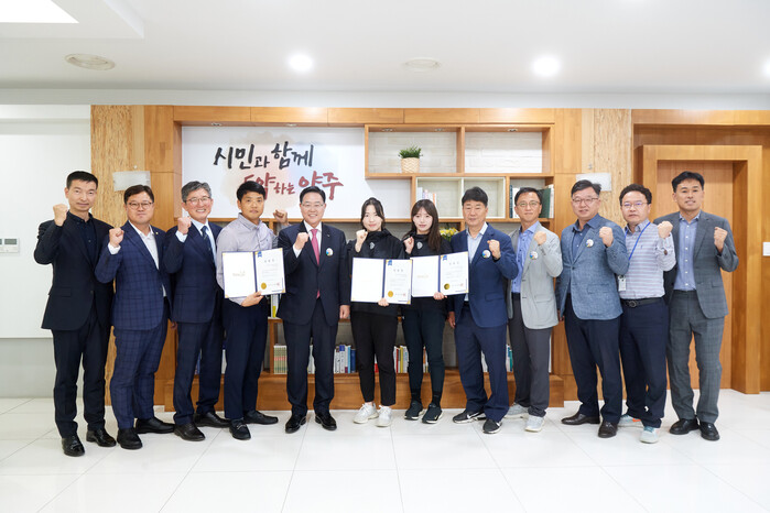 1일 시에 따르면 지난달 30일 시청에서 강수현 양주시장이 새롭게 창단한 직장운동경기부 육상부 선수단에 임용장을 수여했다고 밝혔다.