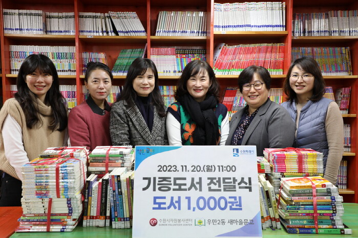 수원시 우만2동 새마을문고회가 20일 수원시자원봉사센터에 책 1000권을 기탁했다.