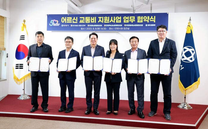 이날 협약식에 참석한 최대호 안양시장 및 5개 기관 대표는 안양시 어르신 교통비 지원사업의 원활한 추진을 위해 역할 분담 및 상호 협력 사항에 서명했다.
