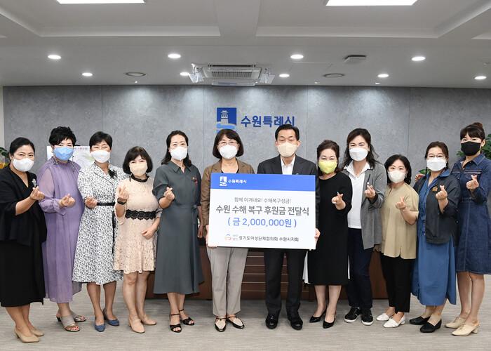 (사)경기도여성단체협의회 수원시지회가 “집중호우로 피해를 본 시민들에게 힘이 되고 싶다”며 수원시에 200만 원을 기부했다.