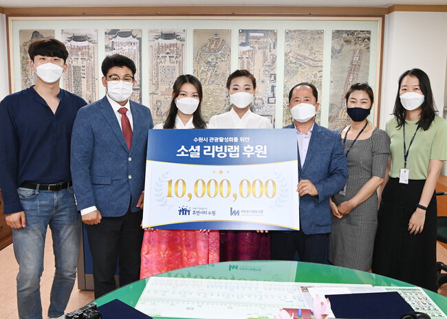 문상철 이사장은 협약식 후 수원 청년 관광홍보모델 대표에게 후원금 1000만 원을 전달했다.