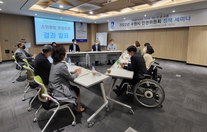 수원시는 11일 수원컨벤션센터에서 ‘2022년 수원시 인권위원회 정책 세미나’를 열고, 인권 정책·사업의 효율적인 추진 방안, 제5기 수원시 인권위원회 활동 방향 등을 논의했다.