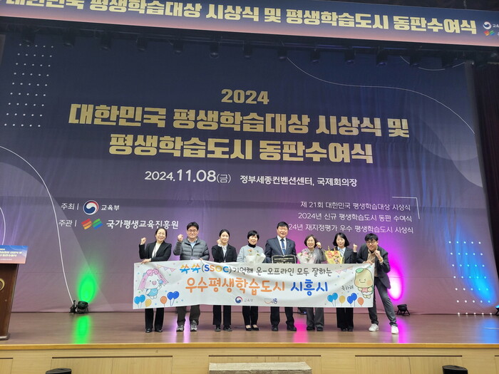 시흥시(시장 임병택)는 지난 8일 정부세종컨벤션센터 국제회의장에서 열린 ‘2024 대한민국 평생학습대상 시상식과 평생학습도시 동판 수여식’에서 ‘2024년 재지정평가 우수 평생학습도시상’을 수상했다.