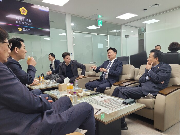 경기도의회 더불어민주당 최종현 대표의원(수원7)이 5일(목) 예결산특별위원회를 방문하여 예산안 심사 중인 예결산 위원회 위원들을 격려했다.