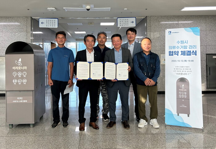 수원시는 12일 시청에서 수원시의류재활용협회와 의류수거함 관리 업무협약을 체결했다.