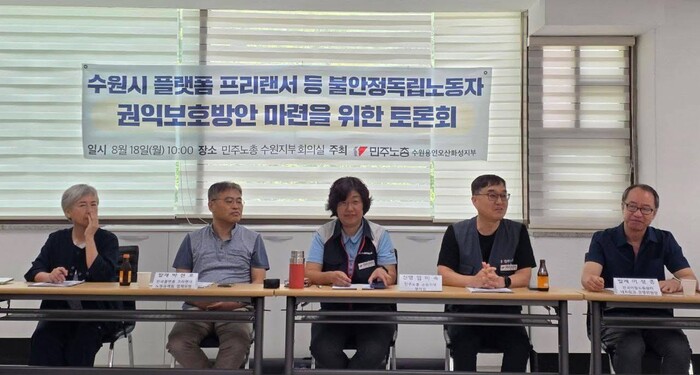 수원특례시의회 윤경선 의원(진보당, 평·금곡·호매실)은 지난 18일, 민주노총 수원지부 회의실에서 열린 「불안정 독립노동자 권익보호 토론회」에 참석해 플랫폼 노동자, 프리랜서 등 불안정 독립노동자의 권익 보장 필요성을 강조했다.
