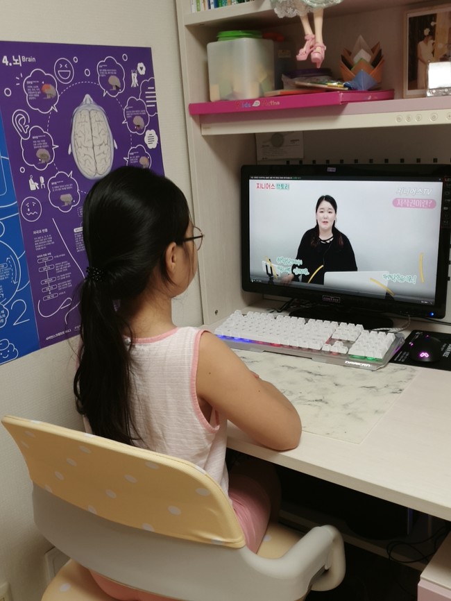 <사진/ 한 드림스타트 아동이 집에서 유튜브 영상 제작 강의를 보고 있다. >